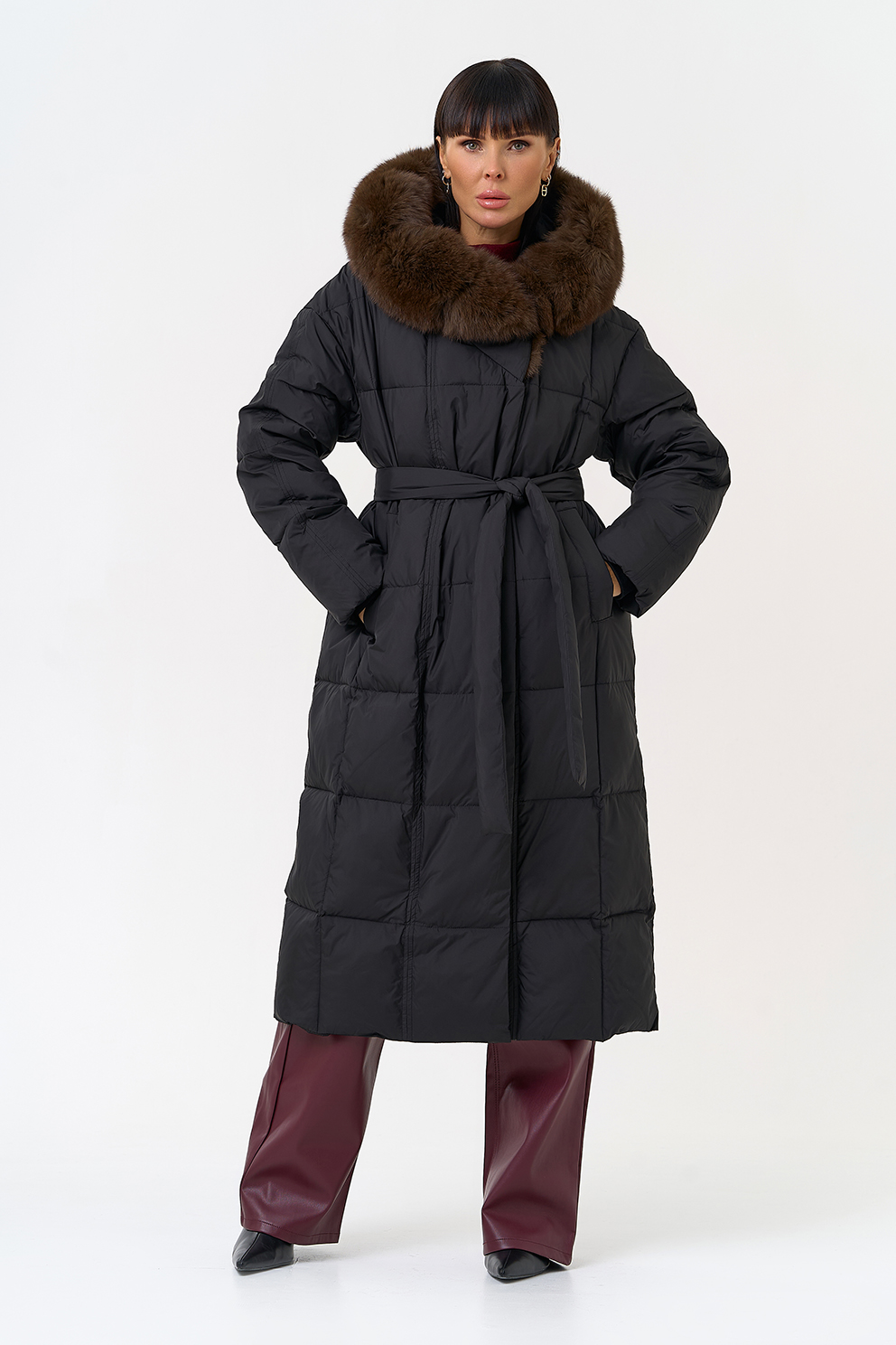 Отделка воротника - песец, цвет коричневый
