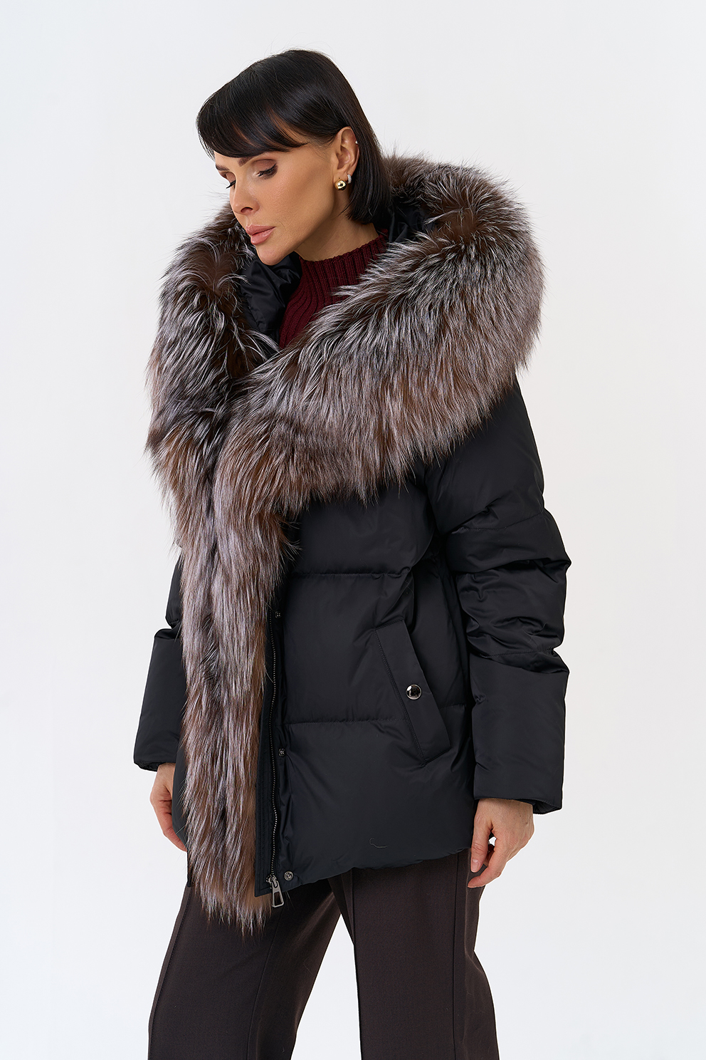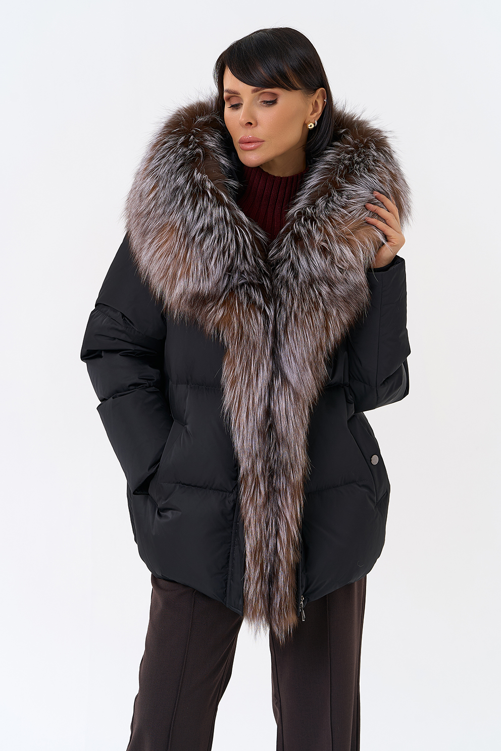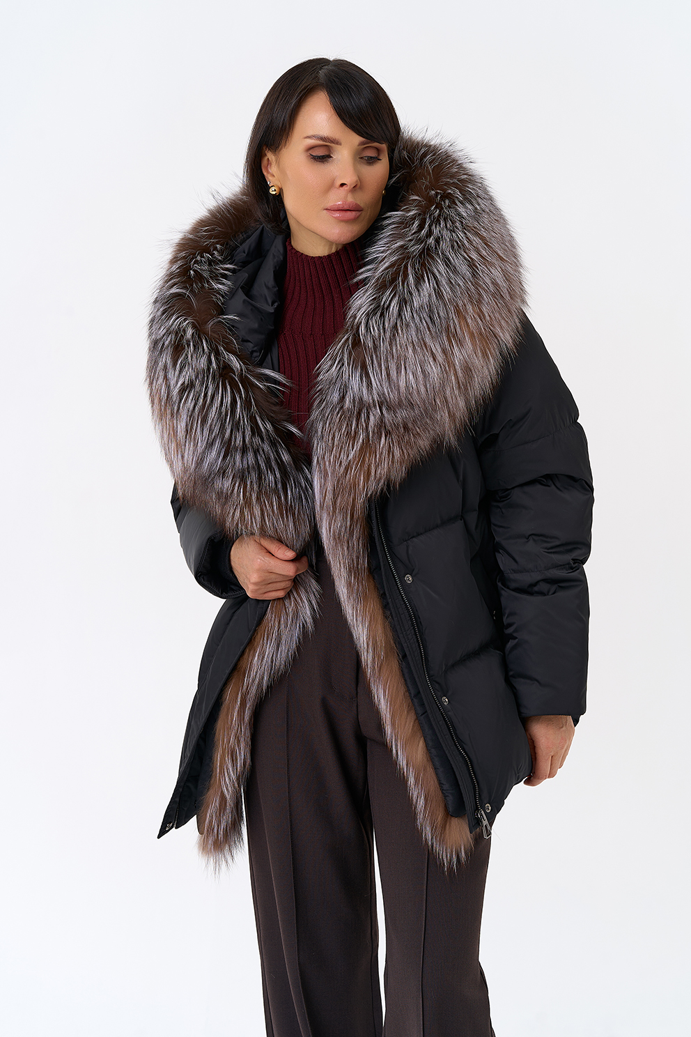 Крой воротника - капюшон, отделка блюфрост