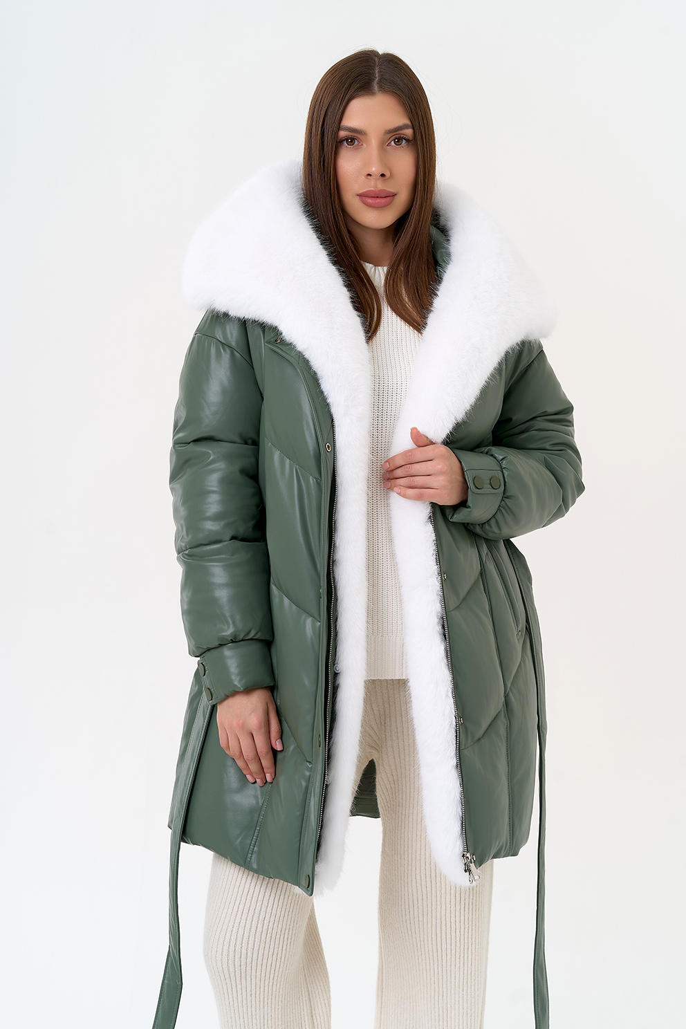 Отделка воротника - эко мех, цвет белый